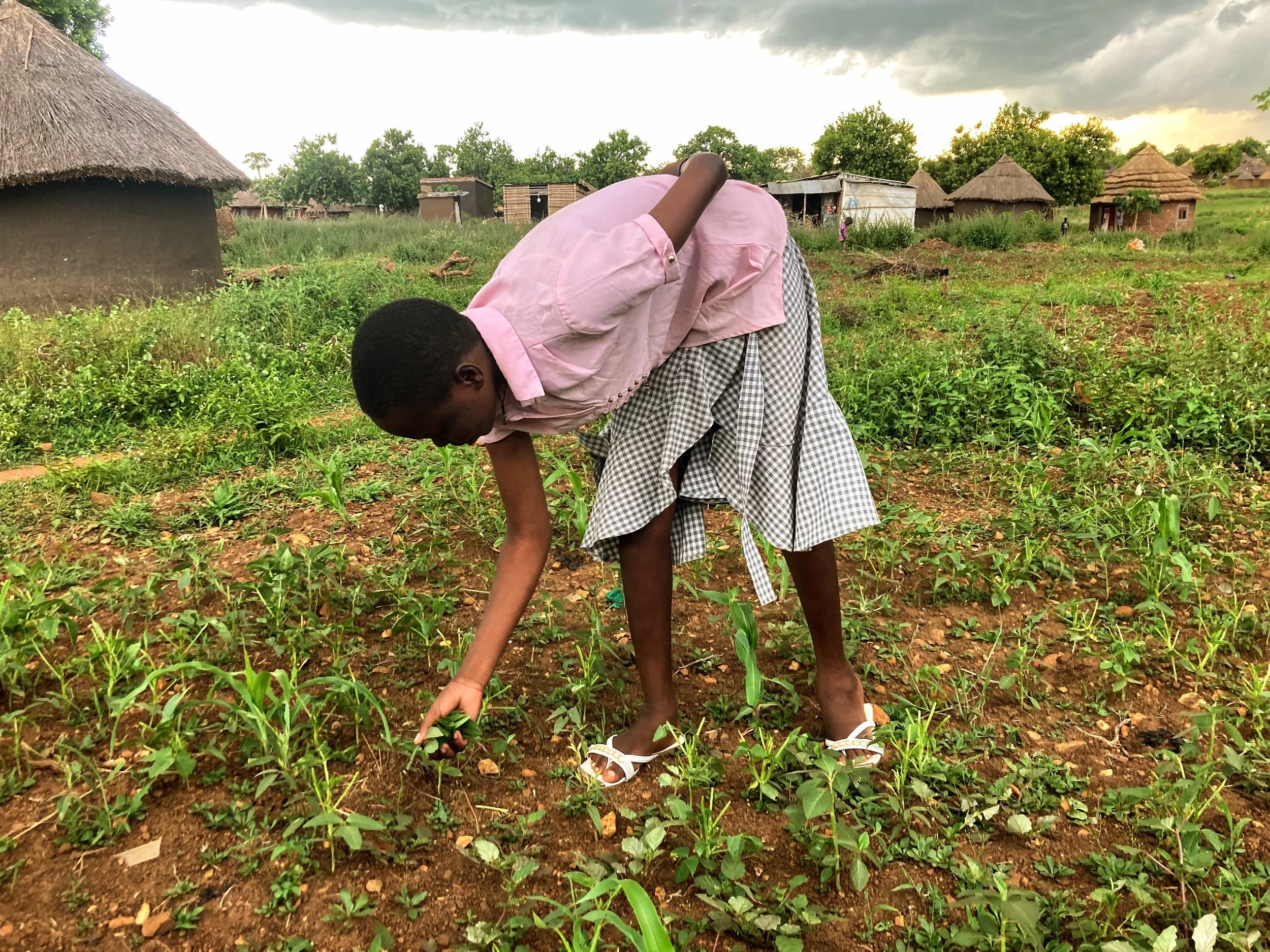 MBB Scholar Fiona working in the garden at the Pagirinya Refugee Settlement during school break.